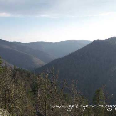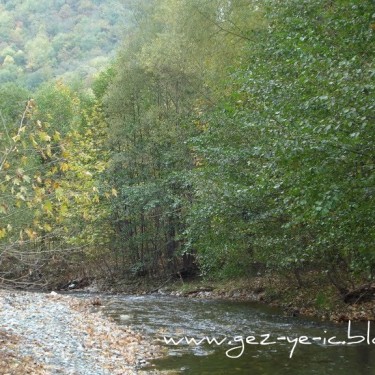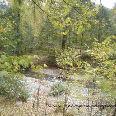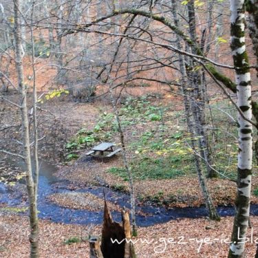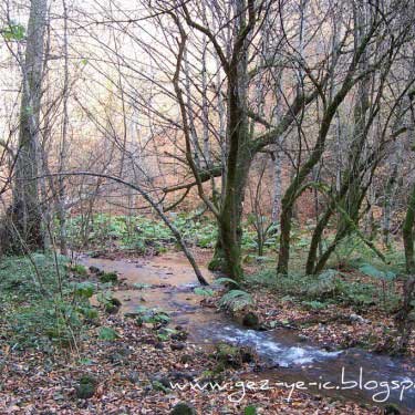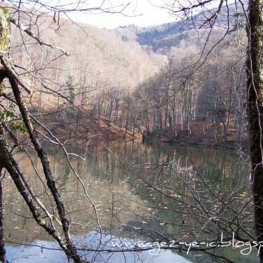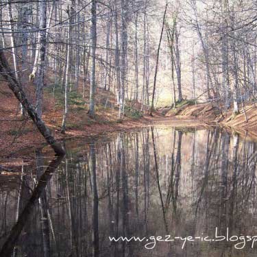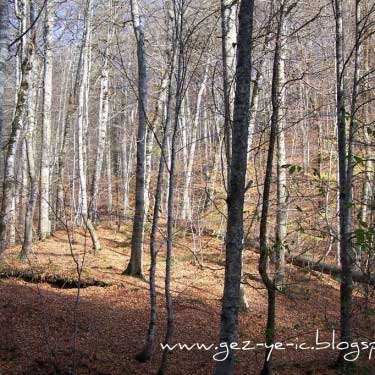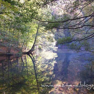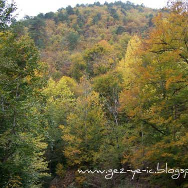 Mengen üzerinden gidiş ise, Mengen şehir merkezinin çıkışından yaklaşık 48 kilometre kadar. Bu yolun yarısı asfalt, diğer yarısı stabilize. Yol boyunca akan ince bir dereye paralel gidiyorsunuz. Bu yoldaki bitki örtüsü, çamdan ziyade meşe, kayın gibi ağaçlar. Sonbaharda bu ağaçların yaprakları sararmış, kızarmış, bir kısmı dökülmüş oluyor, yani tam hazan mevsimi. Bu 48 kilometrelik yolu tam bir renk cümbüşü eşliğinde gidiyorsunuz. Bu yolda 1.5 saatinizi alır, fakat yolda durup fotoğraf çekmeler seyahati 2 saate getiriyor.