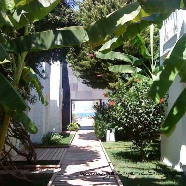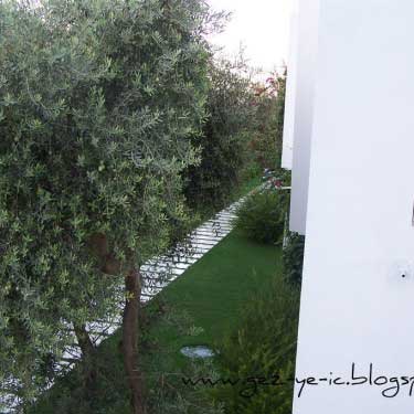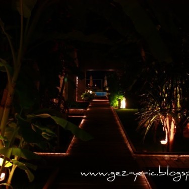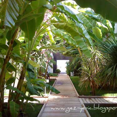 Otelin girişi ile odalar arasında bulunan iç bahçedeki çiçekler ve muz ağaçları çok güzel, doğayla uyumu sağlıyor.