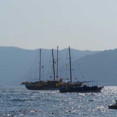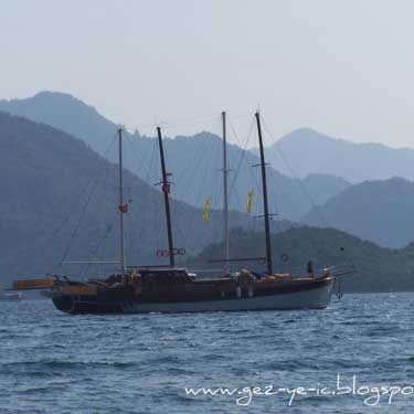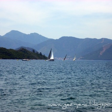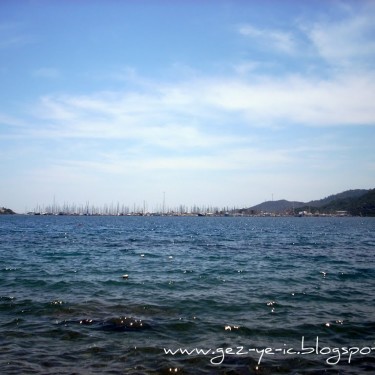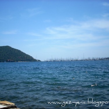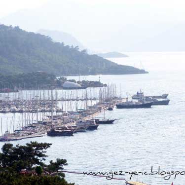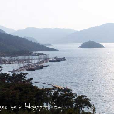 Yalancı Boğaz’a, Marmaris’e girince sola dönüp Aksaz Deniz Üssüne giden yoldan gidiliyor, yaklaşık 10 km. kadar. Yani İçmelerin tam ters istikameti.